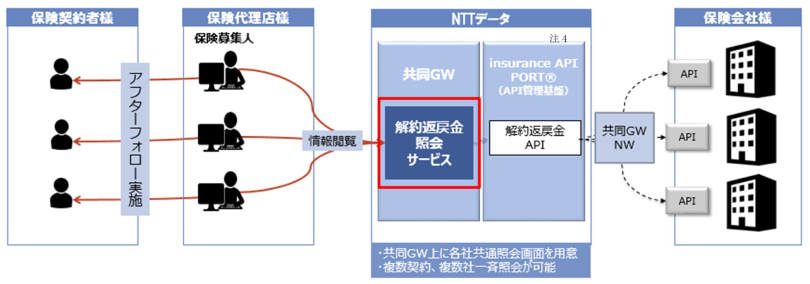 - 注1 保険会社共同ゲートウェイは保険会社と保険代理店を繋ぐ業界基盤プラットフォームです。2002年よりNTTデータが提供しています。保険代理店と保険会社間のシステム連携をWEBベースで実現します。https://www.nttdata.com/jp/ja/lineup/insurance_gateway/