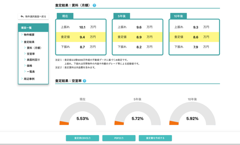 図1:AI査定結果(賃料、空室率)