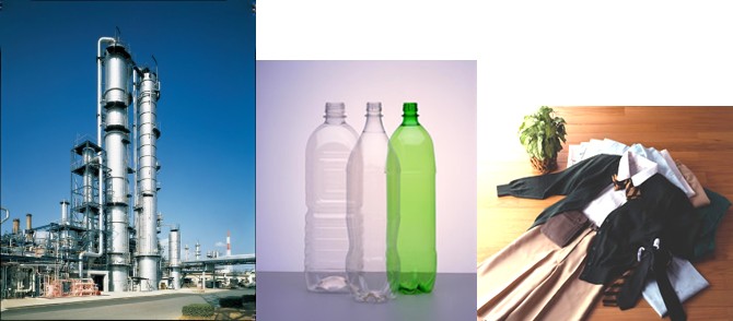 図2:CFPを提供する石油化学品・機能材等(例:パラキシレン製造装置とパラキシレンを使用した製品イメージ)