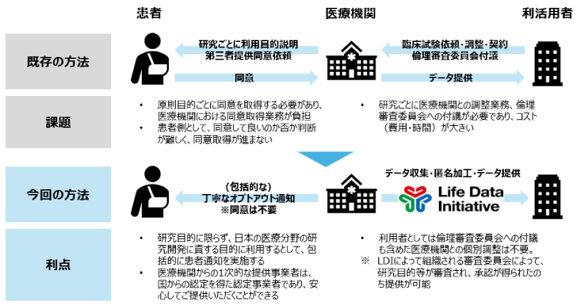 - 注7 LDI:認定匿名加工医療情報作成事業者、NTTデータ:認定医療情報等取扱受託事業者