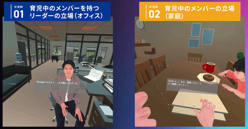 (2)育児中社員目線、リーダー目線の2視点VRサービスの開発・提供