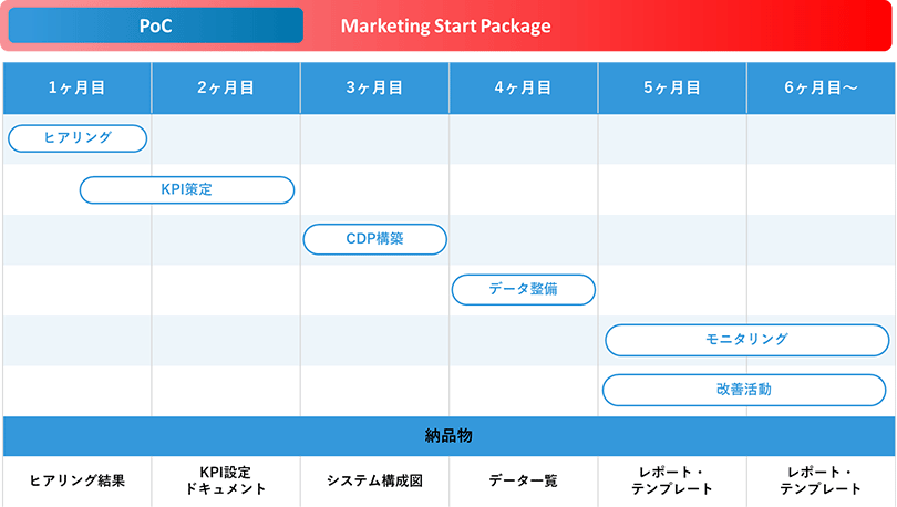 「Marketing Start Package」の各フェーズと支援内容は以下の通りです。