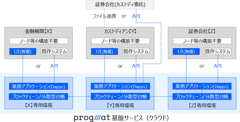 国内全体で既に2,700億円規模のST案件注4が組成されており、ST案件取扱数や利用証券会社のネットワークにおいて「Progmat」は国内トップの実績注5となっていますが、これまでのパッケージ版では自社サーバー上にブロックチェーン/分散型台帳のノード等を構築するか、カストディアンとして第三者を介在させて手数料を支払う必要があり、市場参加者の裾野を拡げるうえでのハードルとなっていました。