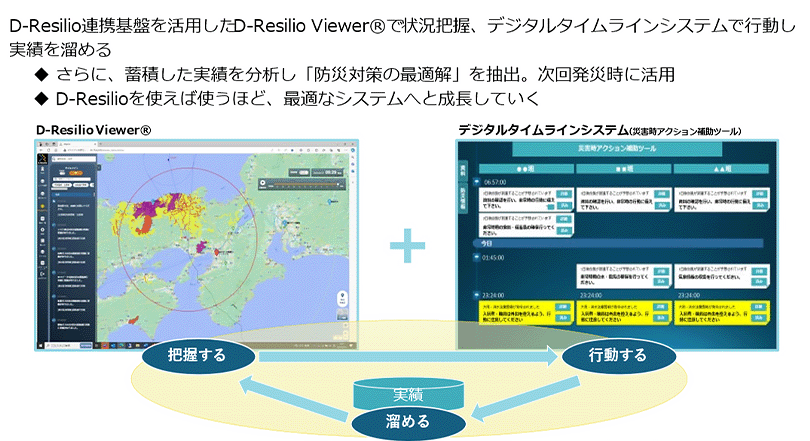 タイムラインは、現時点では各自治体で用いられることを前提としていますが、時々刻々と変化する気象・災害情報をともに現場でとるべき最適な行動を提示できることは、企業におけるBCPをはじめ、さまざまな組織体や分野でも適用可能です。これを踏まえ、両者はD-Resilio連携基盤にVANTIQの生成AIの技術を掛け合わせることで、精度の高いデジタルタイムライン活用事例の拡大を目指します。