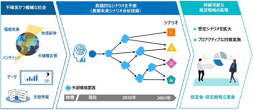 - AIを用いたロジカルかつ根拠が明確なシナリオ分析の実現