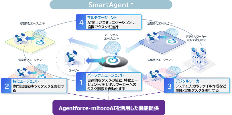 | 1 | Agentforce、mitocoAIなど業務プロセスへの生成AIの早期活用支援 |