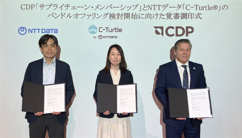 NTTデータは、気候変動対策に向けた取り組みを推進しており、NTTデータが提供する「C-Turtle」では、サプライチェーン全体の排出量算定において、CDPが保持する一次データを活用し、サプライヤーの削減努力を反映した算定を行ってきました。