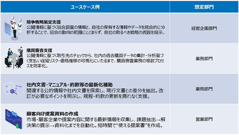 国内のオフィスワークにおいては、文書作成や情報収集、調整業務などの定型作業が依然として大きな負担となっており、属人化や品質のばらつきが生じています。また、人口減少による労働力不足といった社会課題は不可避であり、定型作業の効率化は急務であると認識しています。