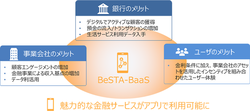 図1:BeSTA-BaaSがもたらす銀行・事業会社・ユーザのメリット