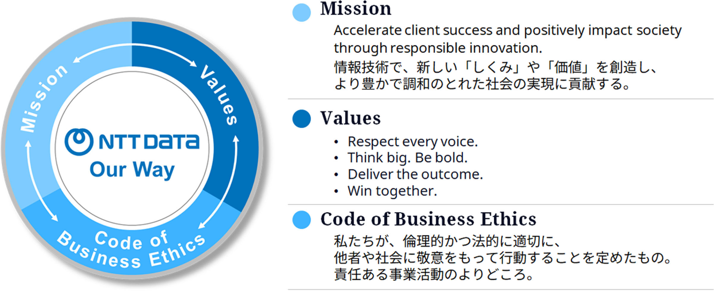 NTT DATAの 使命、存在価値を示すものであり、経営における最終的な拠りどころ