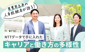 NTTデータには、多様な価値観や働き方を志向する社員の活躍をサポートする各種制度が用意されています。また育児・介護中社員に対する諸制度や選択式の福利厚生制度など、常に組織や諸制度の変革を続け、社員エンゲージメントの高い会社であることを目指しています。