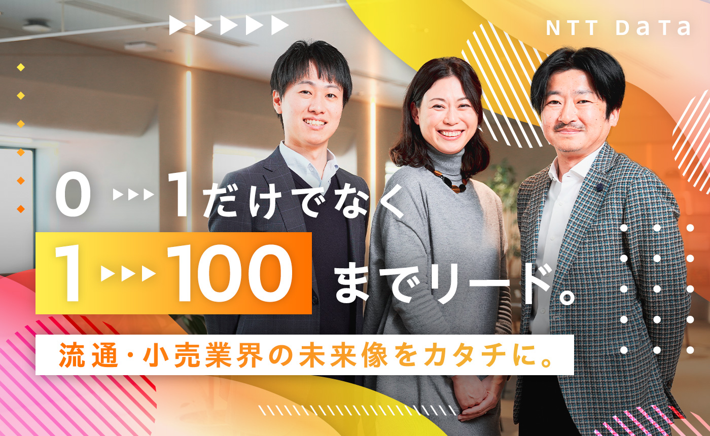 私が現在担当する大手コンビニチェーンのプロジェクトでは、今までにない「次世代のコンビニ」の実現を目指しています。NTTデータがリードするさまざまなプロジェクトで得た経験・知見・アセットを活かし、いずれは流通・小売業界全体の変革に貢献することが私の目標です。社会そのものをより便利で暮らしやすいものに変えていくために、これからも全力で取り組んでいきたいと思います。