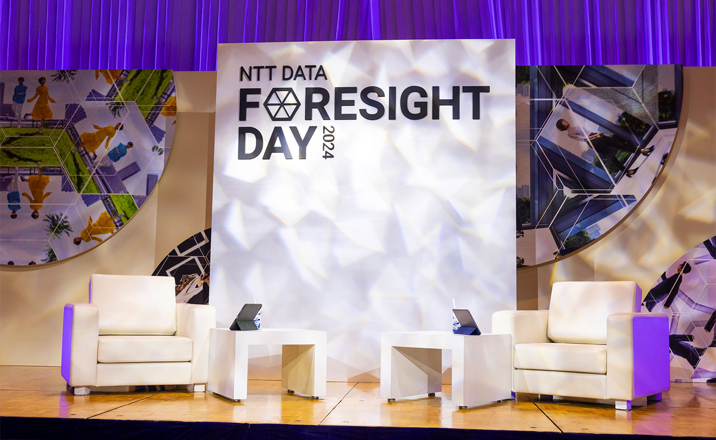 対談を踏まえて、佐々木は「より豊かで調和のとれた社会の実現に向けて、従来の業界に縛られず、より高い視座で社会課題を見つめ直す必要がある」と話し、「NTTデータは『社会変革プロデューサー』として、Foresightをベースに業界を横断し、プレイヤーを巻き込むことで実現に近づけていく」という想いが語られました。
