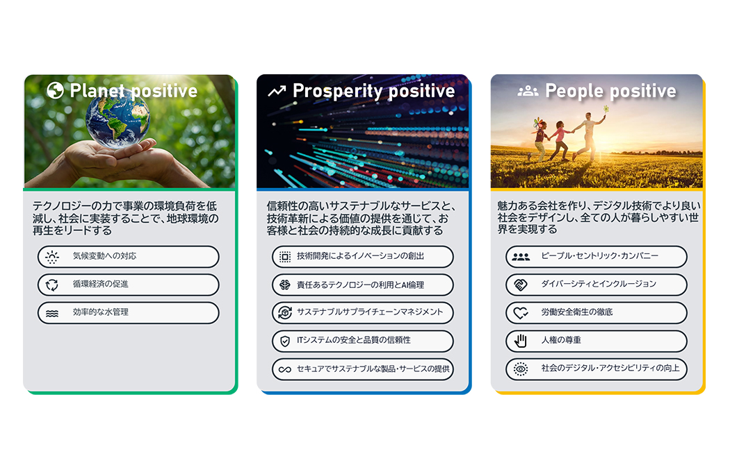 NTT DATAは2022年からスタートした中期経営計画で「Realizing a Sustainable Future」というスローガンを掲げ、「企業活動」とお客様や社会に対する「事業活動」の両面から、社会課題の解決と地球環境への貢献に取り組んでいます。