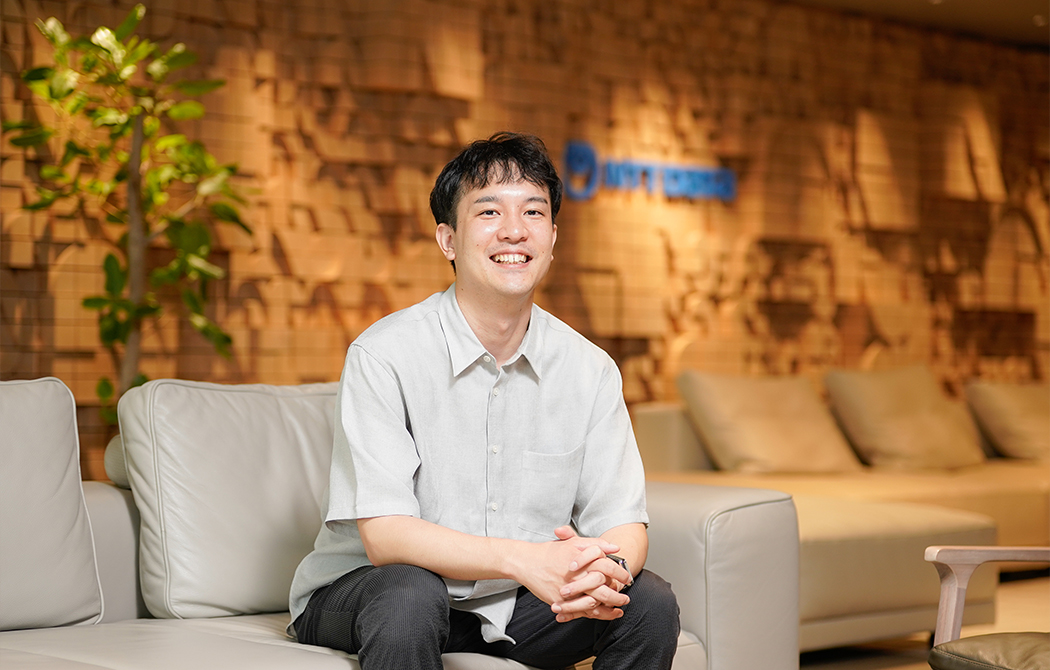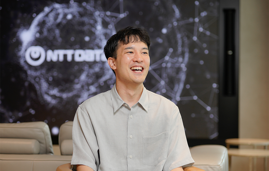 テクノロジーを起点とした多様なITソリューションを扱える土壌があり、それをお客様へ直接提案することができるNTTデータは理想的な環境でした。加えて、NTTデータはグローバル領域において着実に成長を遂げており、将来的に海外市場にも関わっていきたいという私の志向とも合致していました。また、選考を通じて“オープンでフラットな社風”であることも強く感じることができ、個人の挑戦を後押ししてくれるイメージも湧きましたね。