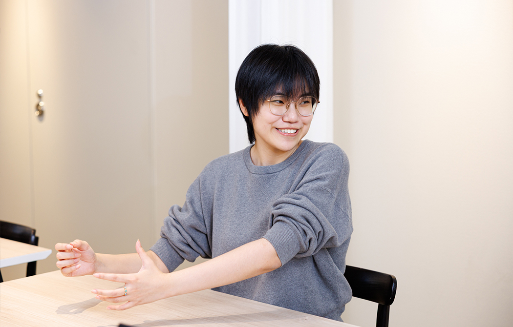 多様な背景を持つ人が、それぞれの強みを発揮できる環境だと感じています。IT未経験を理由に役割が制限されることもなく、入社直後から議論の場で意見を求められ、「私自身がどう考えるか」を重視してもらえました。各々が持つ多様な視点を成果につなげる文化の中で、大きな成長機会を得られていると思います。