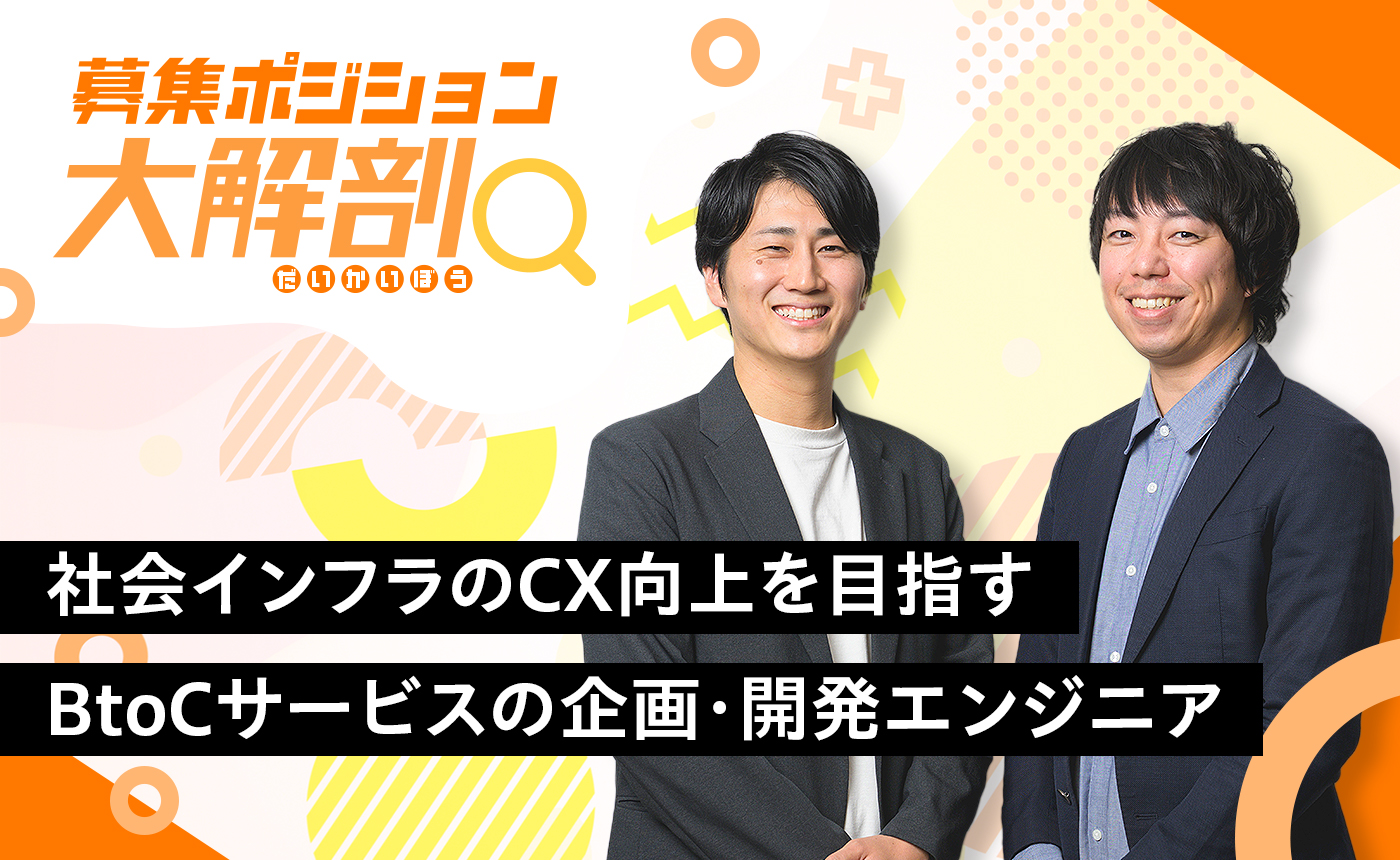 今回の「ポジション大解剖」では、社会インフラ企業向けのBtoCサービスの企画・開発エンジニアにフォーカスしました。今、世の中でどのような変化が起きているのか。エンドユーザーは何を求めているのか。そんな変化を最前線で感じながら、新たなサービスを企画・開発できるポジションです。「プロアクティブ」な姿勢を持った方とお会いできることを楽しみにしています。