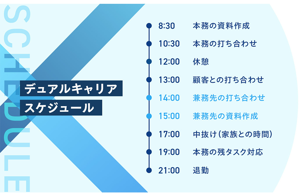 デュアルキャリアは本務を継続しながら新たな業務に挑戦する制度なので、自立して本務を進められていることが前提だと思います。スケジュール管理や業務の切り分けができていないと、本務と兼務どちらの仕事にも支障を及ぼします。