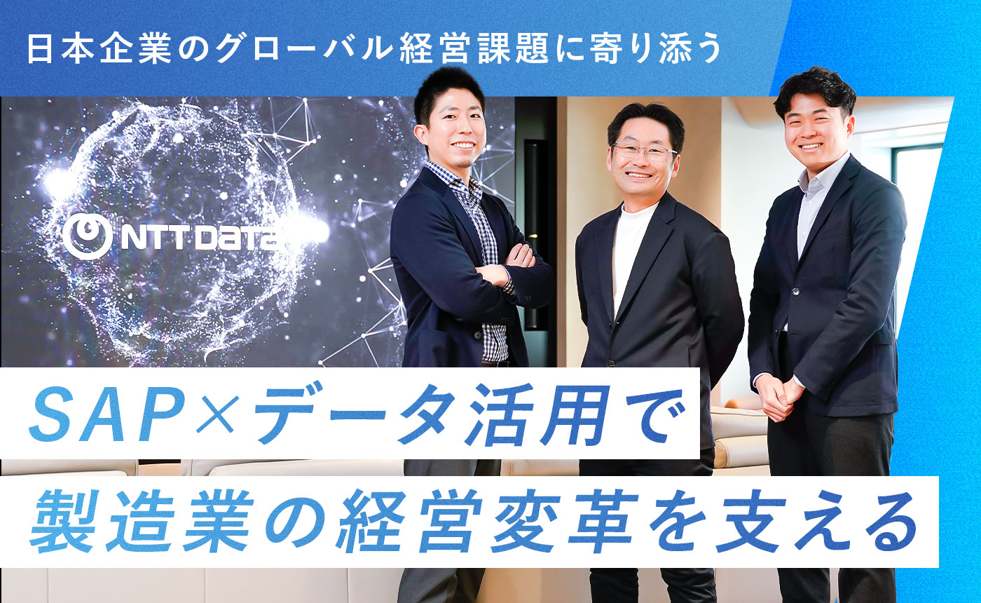 NTTデータのSAP事業部は、日本企業としてのアイデンティティを持ちながら、グローバル規模での経営課題解決をリードする組織です。SAP S/4HANAの導入からデータ活用によるビジネス変革まで、エンドツーエンドで支援する同事業部。今回は、組織を牽引する第一SAP統括部長の山、そして現場の最前線で活躍するテクニカルグレード(TG)の六田、データ活用のエキスパートである太田の3名に、組織のビジョンやグローバルプロジェクトのリアル、そしてNTTデータで働く魅力について語ってもらいました。