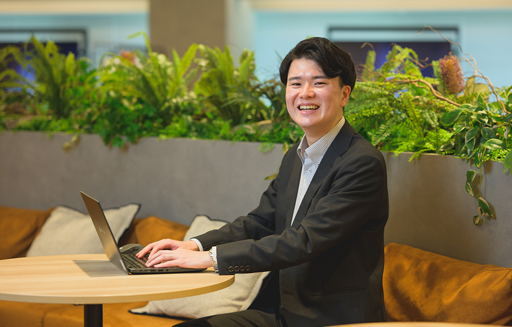その基盤となっているのが、現在参画している大規模案件です。要件定義から契約設計までを一気通貫で担う経験を通じて、三浦の価値を構築する力が着実に磨かれています。さらに、公共以外の社内案件や他事業の事例に触れる横断的な学習機会により、発想の引き出しが大きく広がっています。こうした経験の積み重ねが、営業でありながら“事業をつくる側”の視点を育んできました。