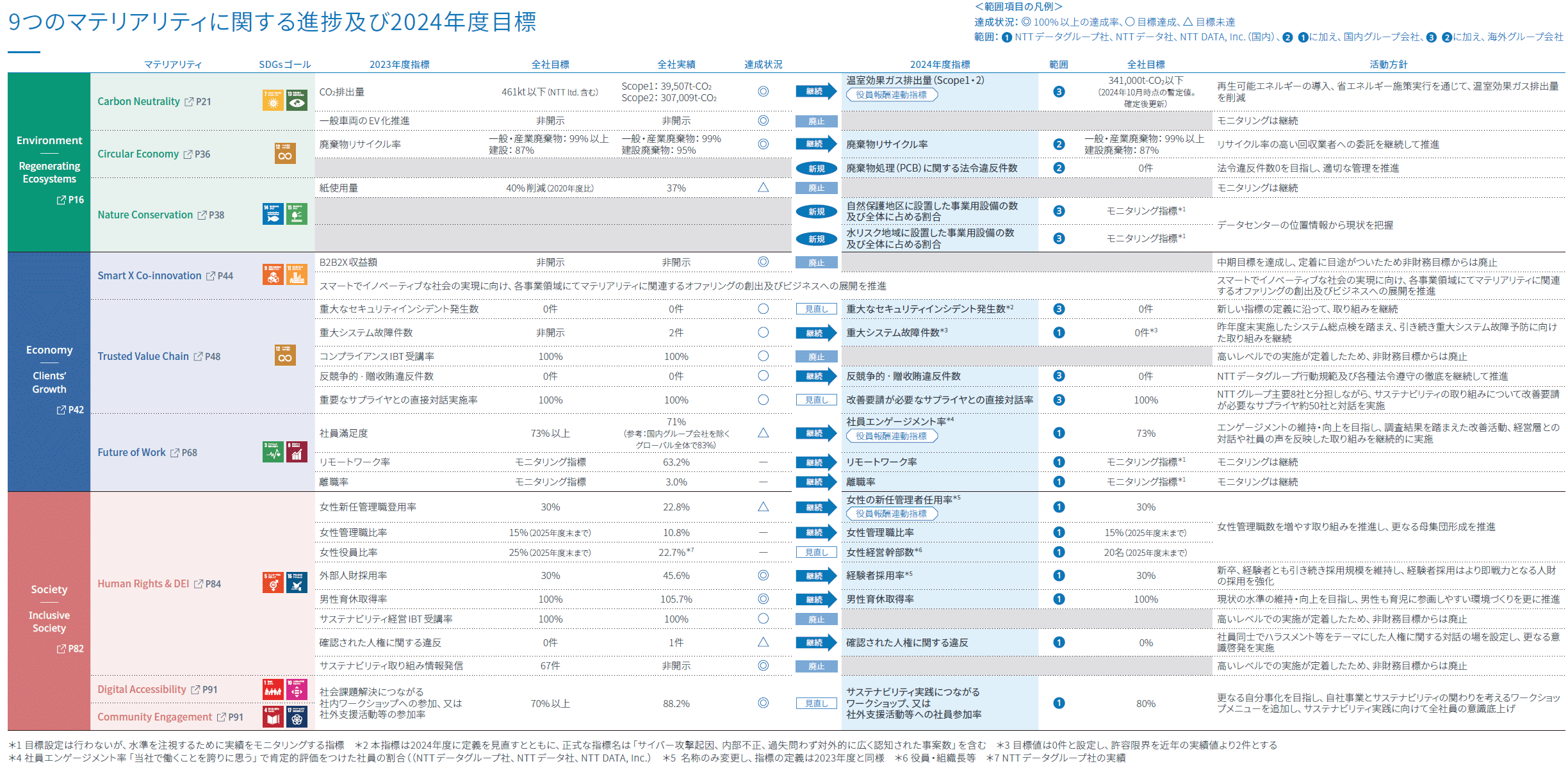 9つのマテリアリティに関する進捗及び2024年度目標