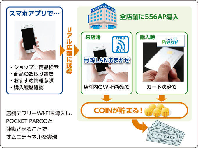 図:店舗にフリーWi-Fiを導入し、POCKET PARCOと連動させることでオムニチャネルを実現