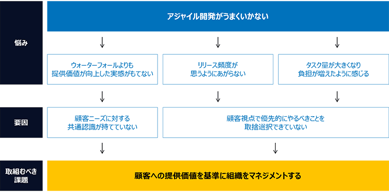 顧客ニーズに対応したアプリケーションの実現を目的にアジャイルを導入したにもかかわらず、開発現場からはしばしば以下のように「顧客ニーズに対応できている実感がない」といった声が聞かれます。
