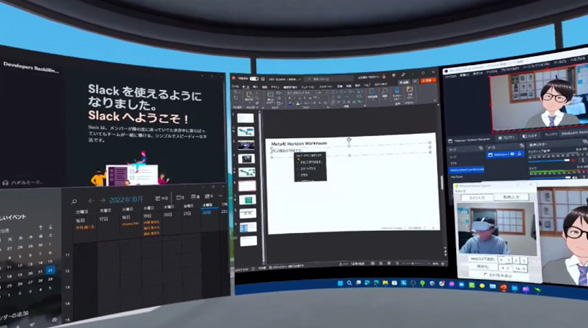図5:VR HMD内でマルチディスプレイによるPC作業を行う様子