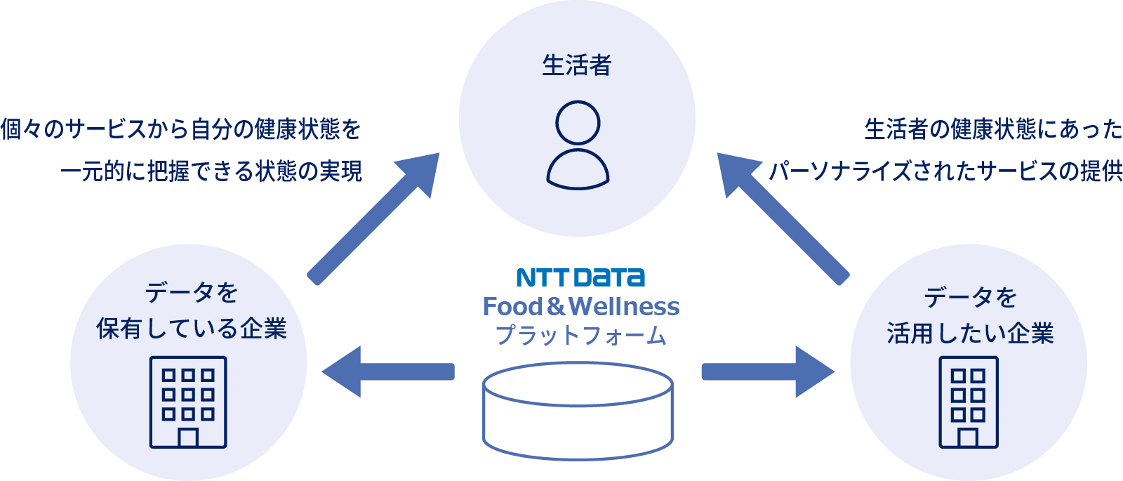 NTTデータは今後拡大するWellness市場×パーソナライゼーションの進展を見据え、生活者の健康情報を活用したFood & Wellnessの取り組みに注力しています。