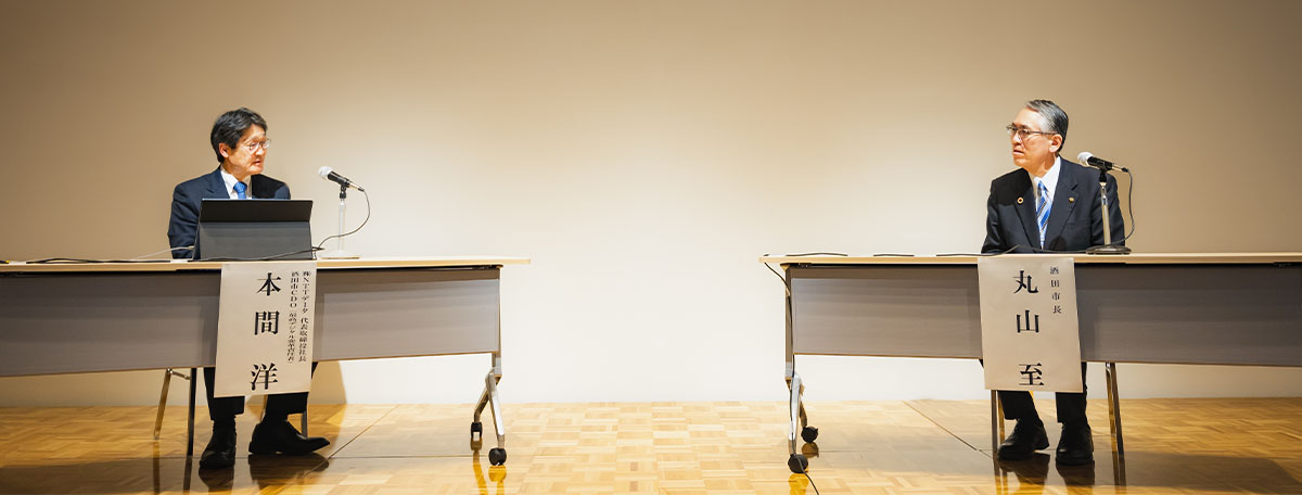 本対談では丸山市長と本間がこの2年半の取り組みを振り返るとともに、地域でDXを進めることの要諦について議論する。