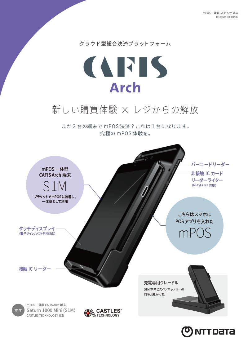 究極のmPOS体験を。mPOS 一体型CAFIS Arch Saturn 1000 Miniのご紹介リーフレットです。