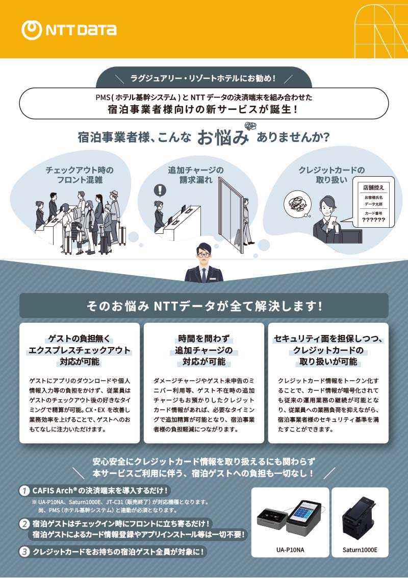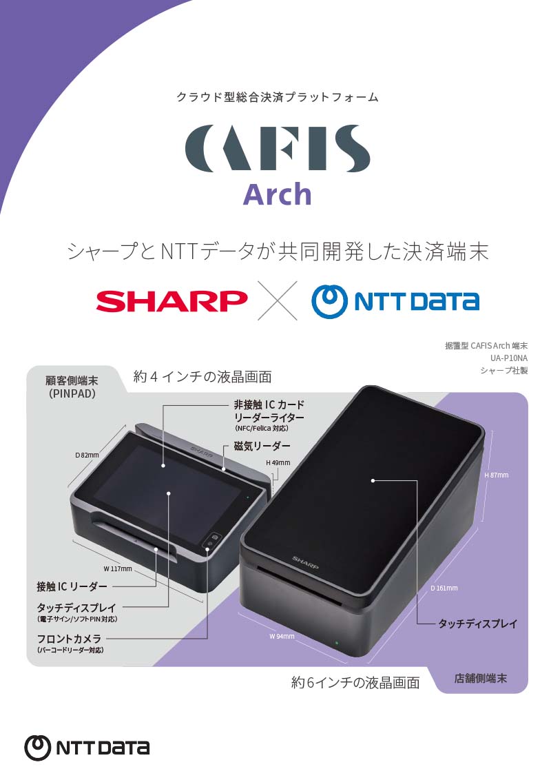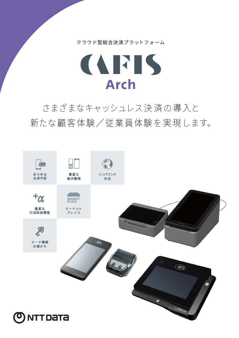 インバウンド、地方創生のツールとして、最新の決済はもちろん、様々な周辺サービスが利用できるCAFISの新しい決済端末「CAFIS Arch」ご紹介リーフレットです。