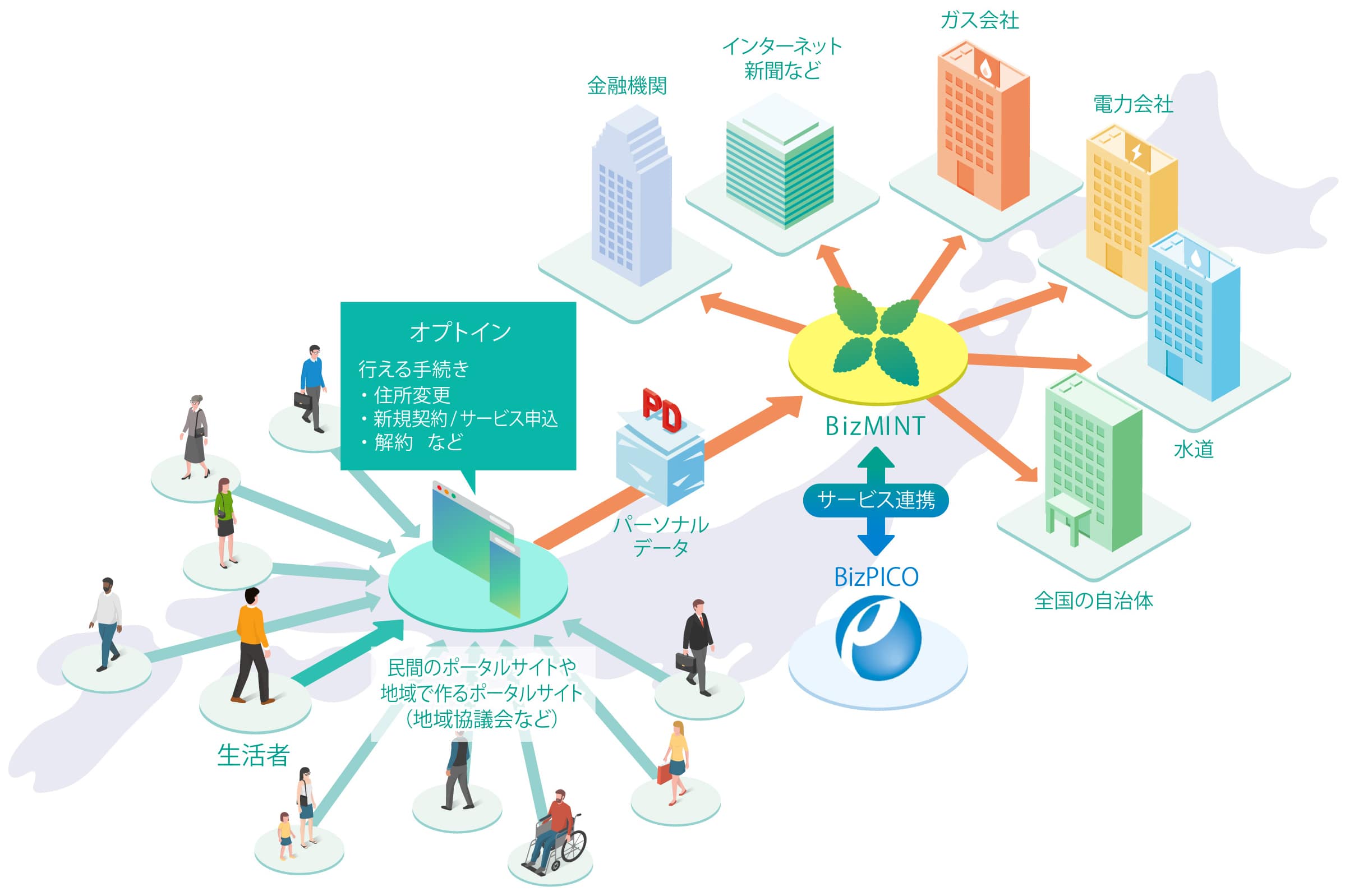 安全かつスピーディに本人確認を完了させることができるため、サービス利用者の利便性向上につながります。また、BizMINTと接続するあらゆる事業者とパーソナルデータ連携が可能になるため新たな顧客獲得の機会が広がります。