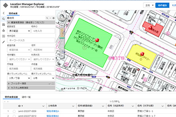 オリックス銀行の主力事業である投資用不動産ローン事業において、Salesforce上でシームレスにゼンリン住宅地図データを利用できる「Location Manager」を導入いただきました。蓄積した物件価格や賃料、管理状況などの不動産情報を統合的に可視化して、融資判断業務に活用されています。