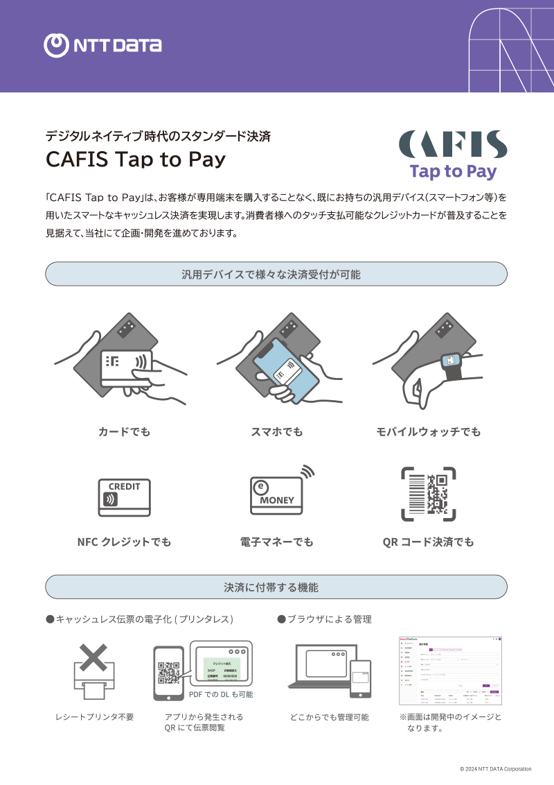 インバウンド、地方創生のツールとして、最新の決済はもちろん、様々な周辺サービスが利用できるCAFISの新しい決済端末「CAFIS Arch」ご紹介リーフレットです。