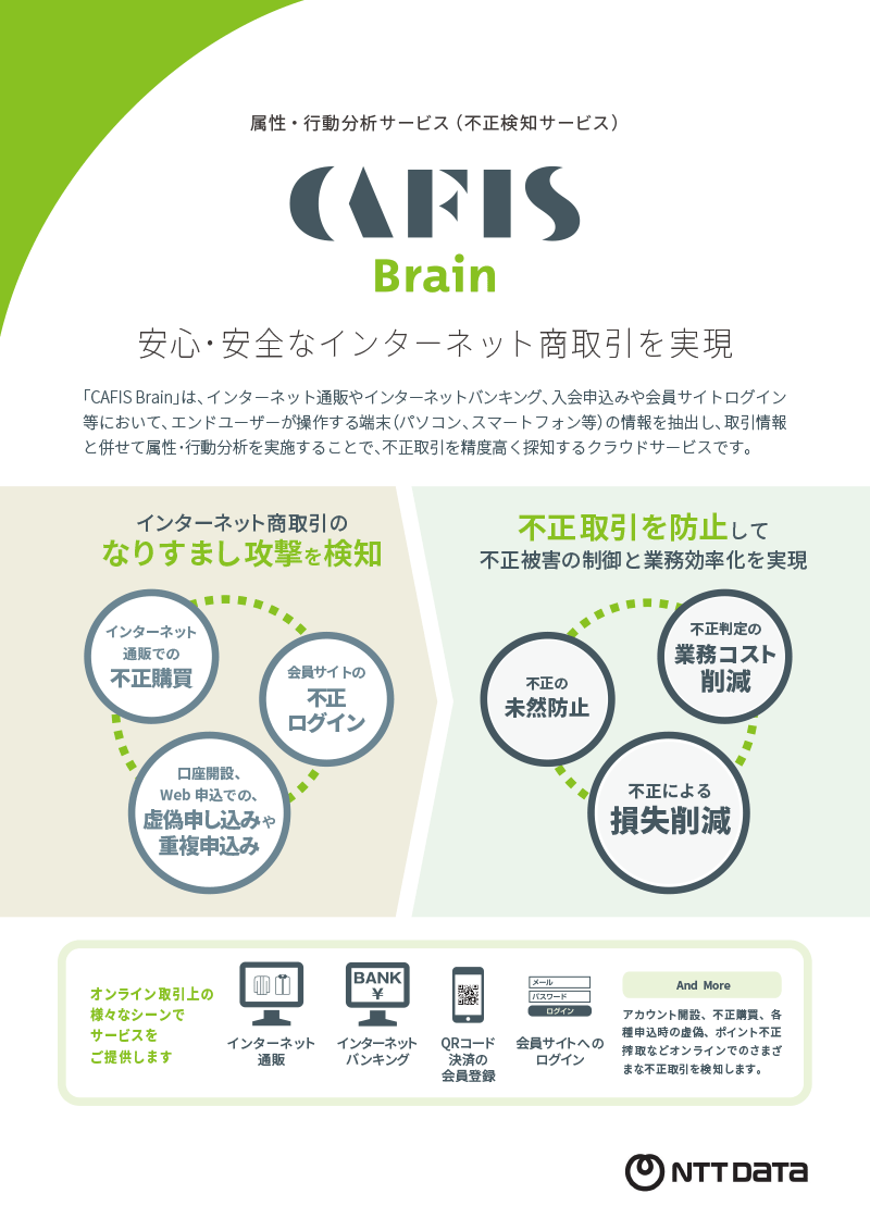 安心・安全なインターネット取引を実現する属性・行動分析サービス(不正検知サービス)のご紹介リーフレットです。