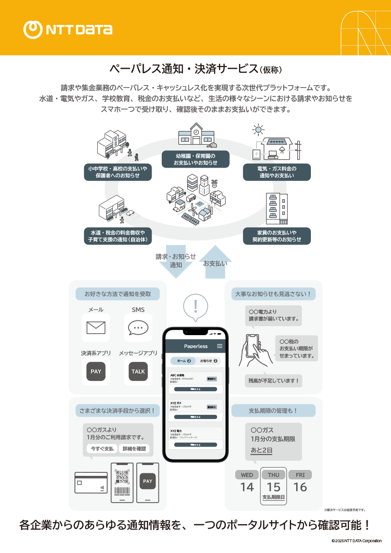 自治体向けコンビニ収納代行サービスおよび各種オプションサービスをご提供する公金決済プラットフォームのご紹介リーフレットです。