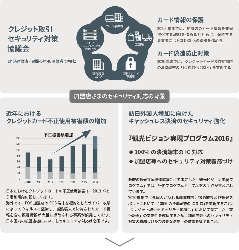 今後、加盟店さま内にてカード番号を用いた処理が必要となる場合、PCI DSS 対応を極小化する「トークナイゼーション」の提供を 予定しています。