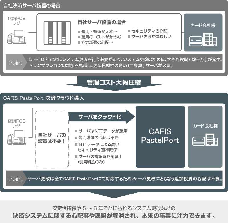 - CAFIS PastelPort決済クラウドにて大幅なコスト削減を実現