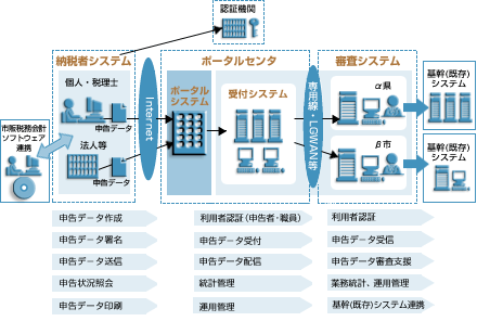 納税者(または申告代理人)の地方税の申告手続が、時間や場所に制約されることなく、インターネットを通じて処理できるシステムです。複数の申告先がある場合も、ワンクリックで申告が完了します。申告書を電子化することで、税務事務処理の効率化に大きく貢献します。