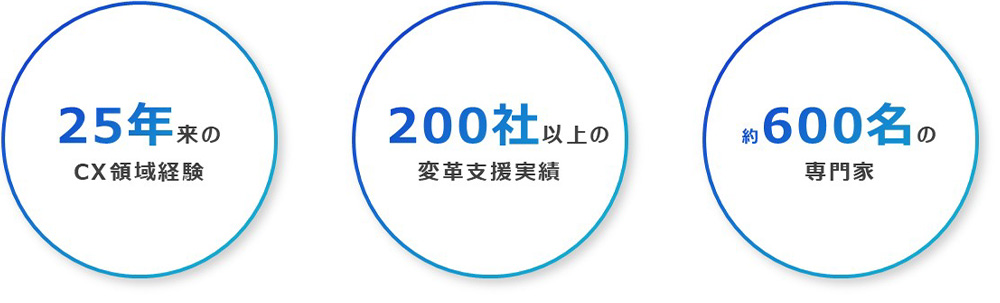 25年以上、200社以上の実績に基づく成功ノウハウと数々の知見を最大限に活用し、テクノロジー、人財、組織、アナリティクスなどさまざまな観点を踏まえた総合的なご支援が可能です。