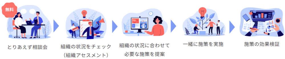 アセスメントでは組織の状況が「スコア化」されるので、今の組織の良い点・悪い点を直感的に把握でき、アセスメント結果を活用しながら、組織改善ができた。また、組織運営において行き詰まったときに、すぐに相談できる伴走者の存在はありがたい。