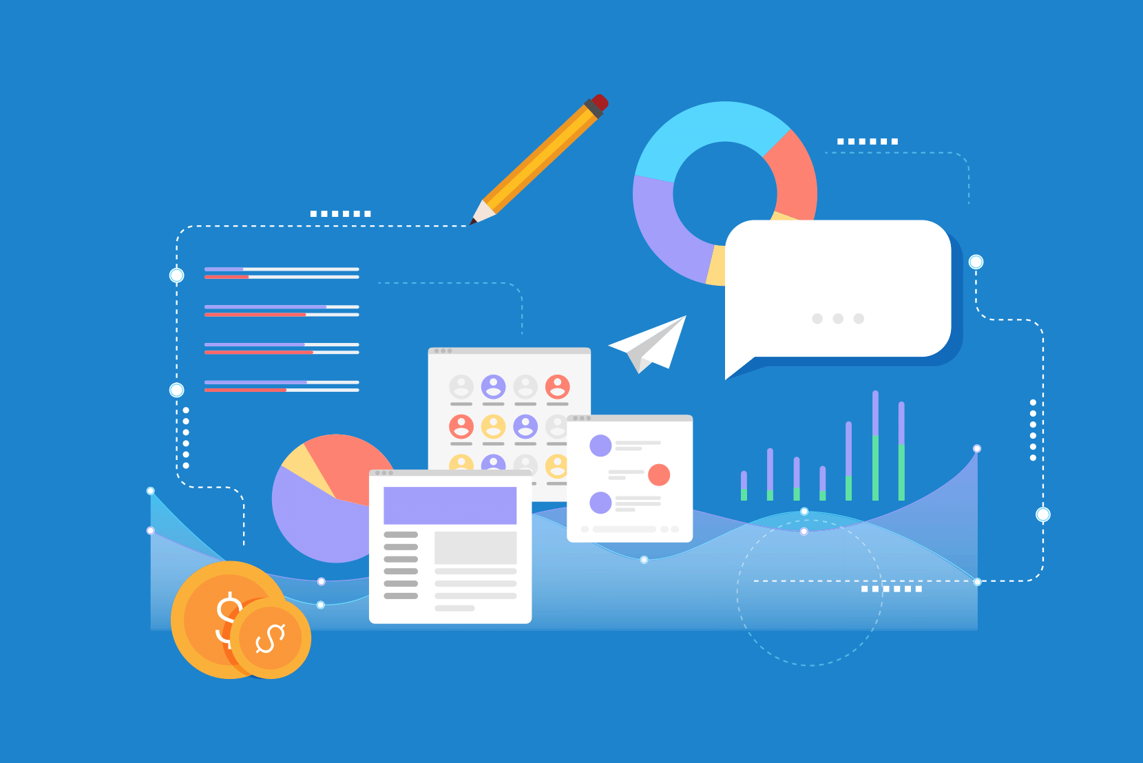 社内情報の検索性改善、生成AIによる要約や推論、タスク実行による業務効率化により、各従業員の生産性向上を支援します。