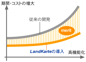 GISを構築するにあたって、システムの機能・性能を左右する基本的演算処理は、大変重要な要素となっています。日々、複雑高度化するGISを実現するためには、複雑な計算を高性能で実現する演算処理が必要不可欠ですが、高度な演算処理を個別に作り込むには、相当の期間とコストが必要です。LandKarteは、GIS構築に必要となる多種多様な演算・編集機能を共有ライブラリ形式で豊富に用意しており、高度な演算を必要とするGISを短期間・低コストで実現するために役立ちます。