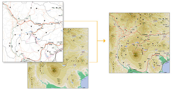 つなぎ合わせる地図は、ラスタ、ベクタを問わないため、既存の地図コンテンツを含めた幅広いデータを活用することができます。
