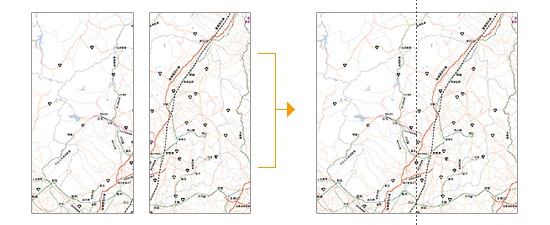 隣接する地域の地図をつなぎ合わせて、一枚の地図として表示