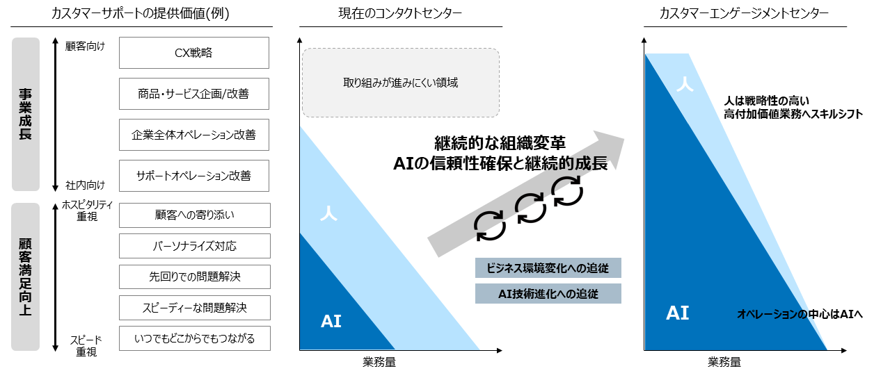 AIエージェントを活用した業務変革においては、信頼性をしっかり担保しながら、AIの業務実行能力向上と組織変革を継続的に行っていくことが不可欠です。