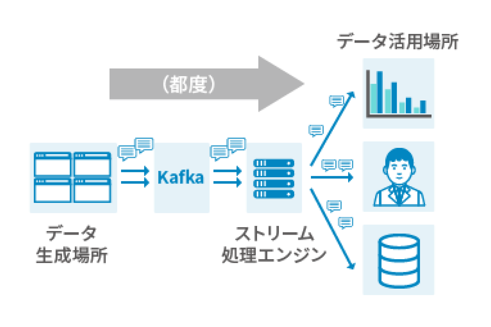 リアルタイムにデータを扱う(収集・連携・処理)する際に利用されます。