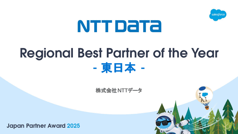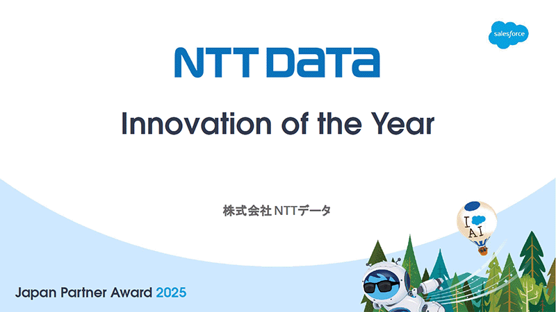 NTT DATAは、株式会社セールスフォース・ジャパン(以下:Salesforce)のSalesforce Japan Partner Award 2025において、「Innovation of the Year」、「Regional Best Partner of the Year <東日本>」を受賞しました。