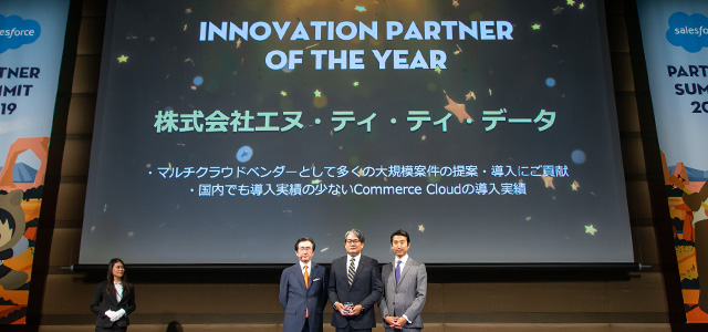 2019年5月23日(木)に開催された「Partner Summit 2019」にてNTT DATAは、Service Cloud/Commerce Cloudといったマルチクラウド導入に向けた取り組みや国内導入事例の少ないCommerce Cloud開発、Marketing Cloudを利用したデジタルマーケテイング領域への取り組みなどが評価され、「Innovation Partner of the Year」を受賞しました。